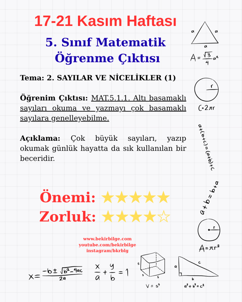 17-21 Kasım 5-8. Sınıf Ortaokul Matematik Kazanımları ve Öğrenim Çıktıları