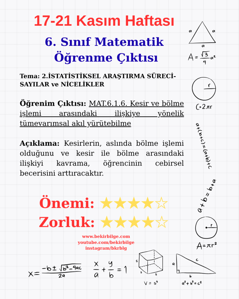 6. sınıf 17-21 Kasım Matematik Öğrenim Çıktısı