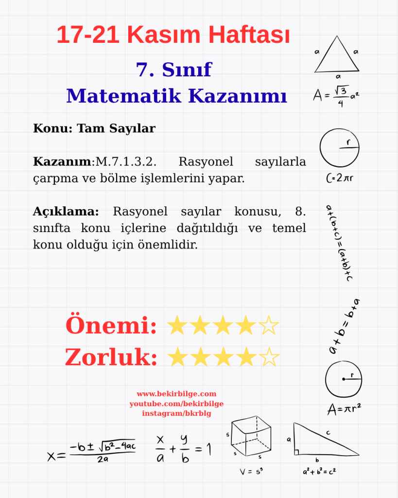 7. sınıf 17-21 Kasım Matematik Kazanımı
