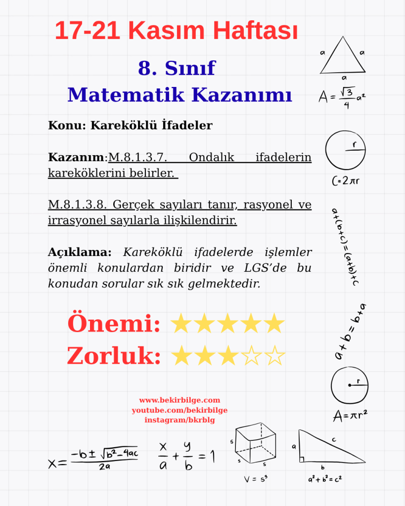 Neden Önemli? LGS’de sıkça sorulan kareköklü ifadeler, öğrencilerin analitik düşünme becerilerini geliştirir.